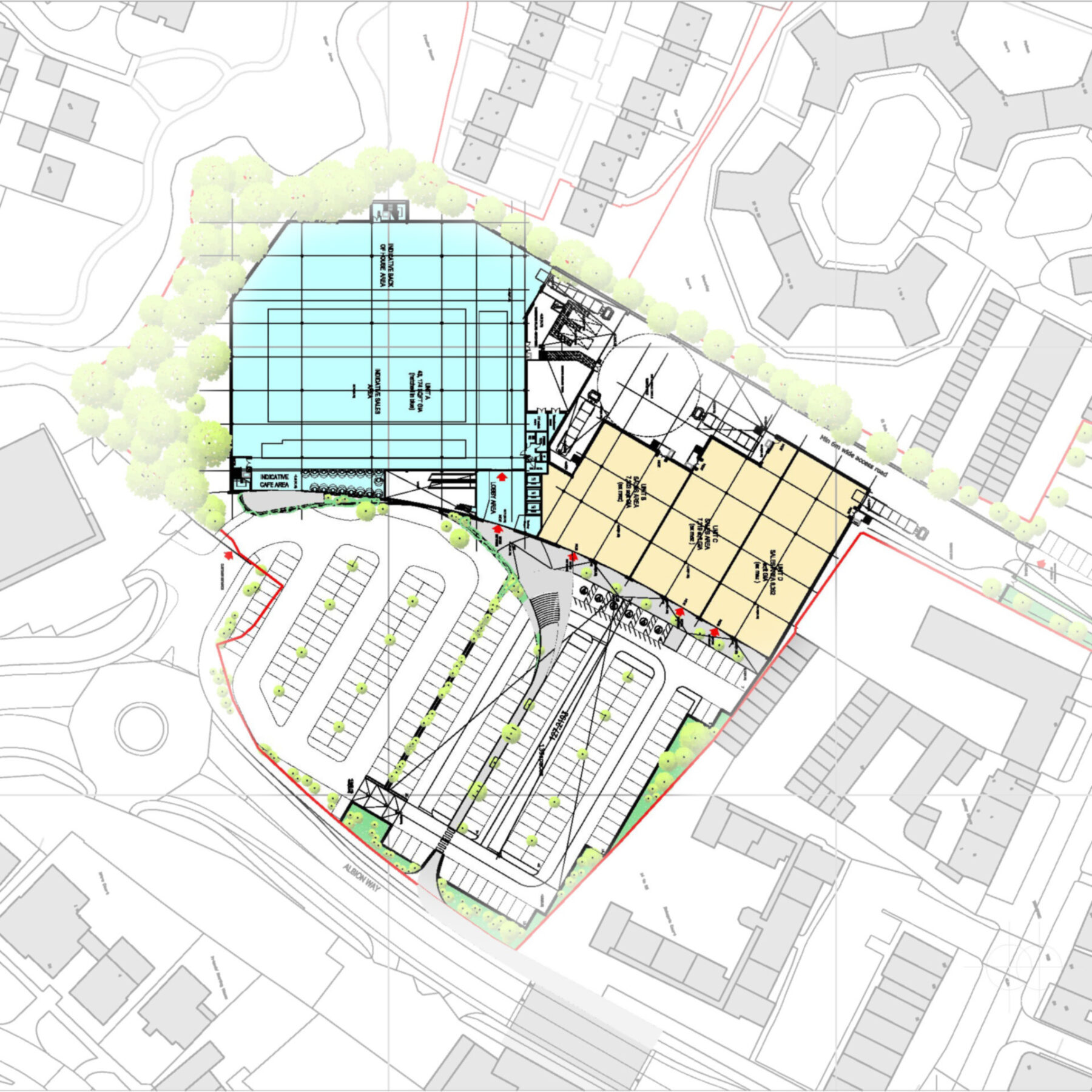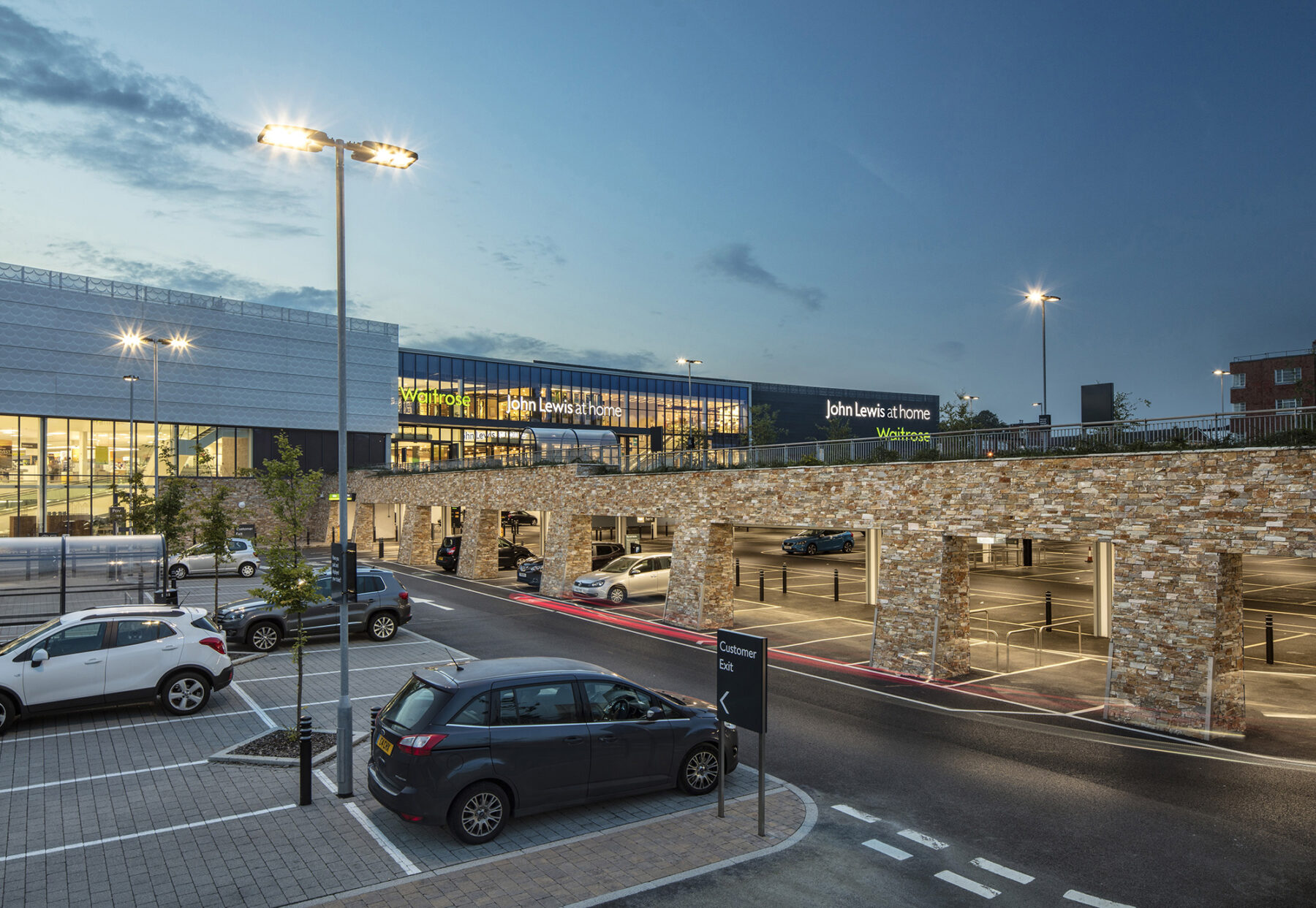 Located immediately adjacent to the prime shopping area of Horsham in West Sussex, this consent builds upon the Local Authorities' master plan for the town centre seeking to strengthen and expand Horsham’s retail offering. The design places the new retail buildings carefully within the site to enable strong and legible linkage with West Street, the town’s prime shopping environment, also undergoing somewhat of a renaissance. Incorporating buildings of this size within an historic town centre has required a careful design approach, concealing where possible the supporting parking and ensuring strong pedestrian connection exists between Horsham’s existing and new retail areas. The facade design references tradition vertical tile hanging so prevalent within Horsham with a perforated metal screen rear illuminated to create a contemporary addition to the local vernacular.