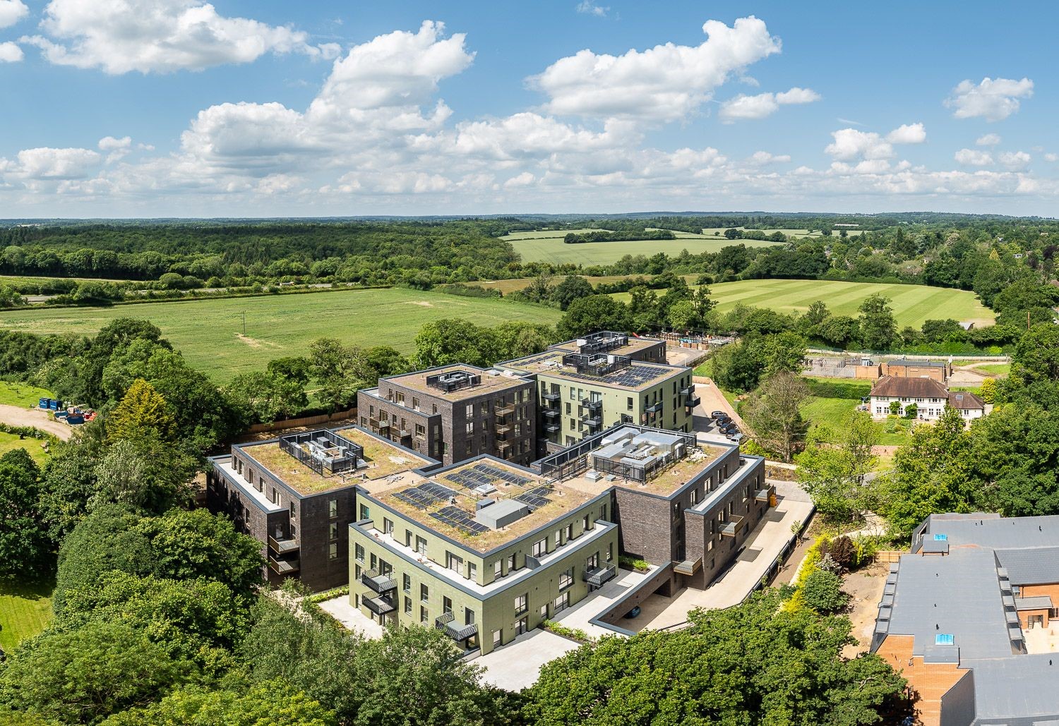 Within a tree-lined site on the fringes of Berkhamsted ColladoCollins were challenged to bring forward a low-rise integrated retirement community of 103 dwellings for longstanding client Elysian Residences that respected the setting of the site and offered connections between the site entrance and the trees and landscape beyond. Our solution involved conceiving a building as a series of interlinked pavilions grouped around a sunken courtyard serving the amenity spaces that act as the heart of the community.