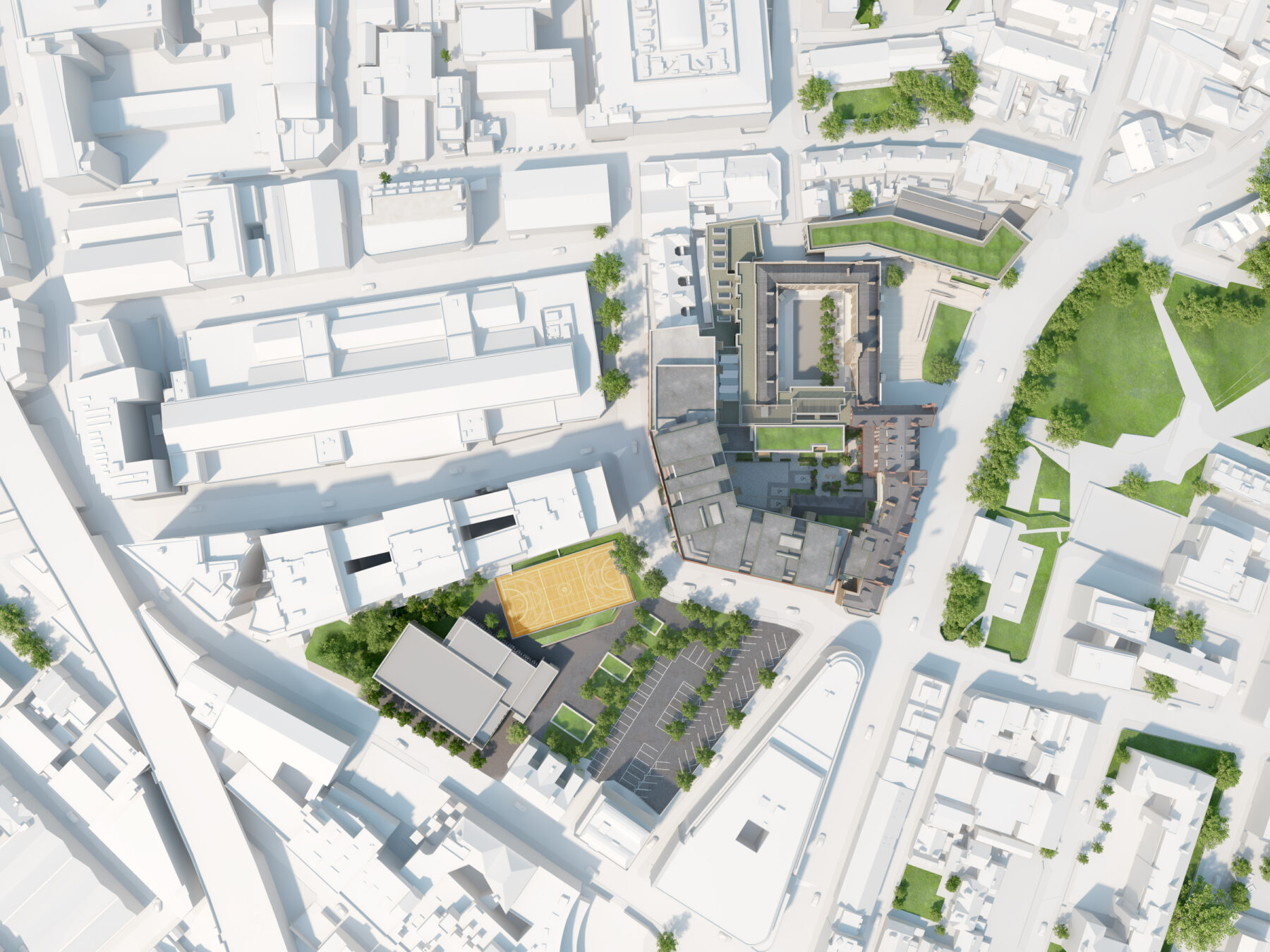 Across the whole project, a unified material palette has been proposed to create a cohesive scheme that fits with the historical significance of the area. The landscape strategy will encourage biodiversity and will link the sites, creating outdoor learning areas for the school, as well as new public realm for the residents and local community to enjoy.